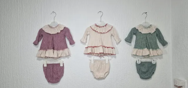 Detalles del productoLote exclusivo de 3 conjuntos para bebé niña, talla 6 meses, de la marca Eva Class.