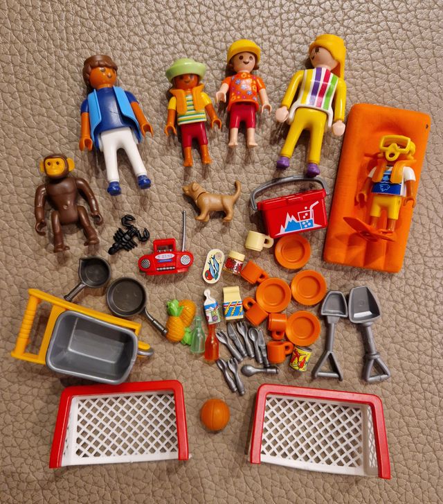 Lote de cinco muñecos Playmobil con tres animales y complementos tal y como se ve en las fotos. SOLO ENVÍOS