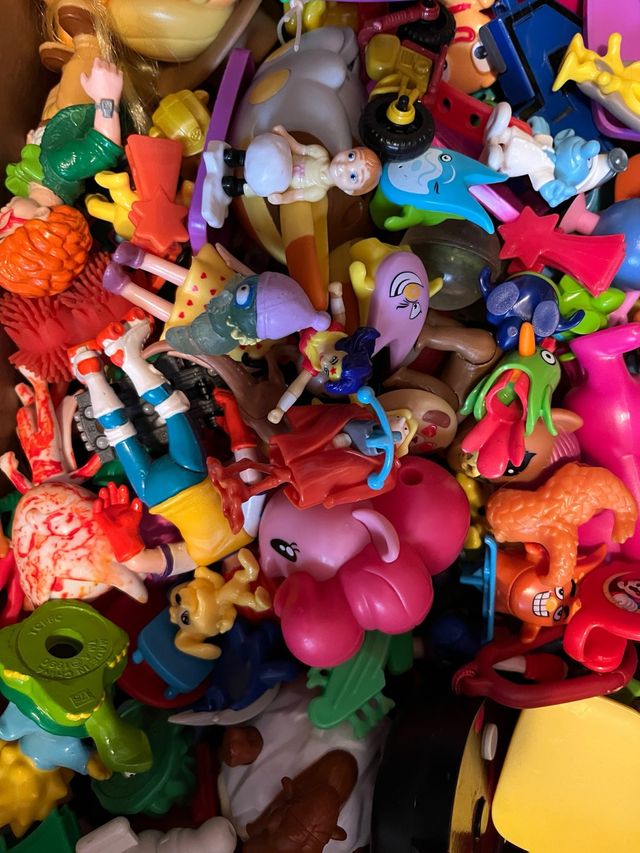 Detalles del productoLote enorme de mas de 3 kilos de figuras y muñecos de Macdonalds, huevos kinder y demás. Hay de todo, figuras de los Simpson, coches, super things (anuncio aparte en mi perfil), pitufos, smileys... todo revisado y en muy buen estado. Escucho ofertas.