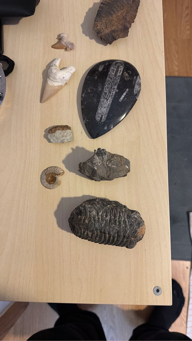 Precio Negociable. Colección de fósiles variados, ideal para coleccionistas. - Dientes de tiburón. - Fósiles de trilobites. - Ammonites. - Belemnites.
