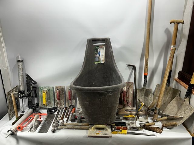 Detalles del productoGran lote de herramientas para albañilería, ideal para trabajos de construcción y reformas.