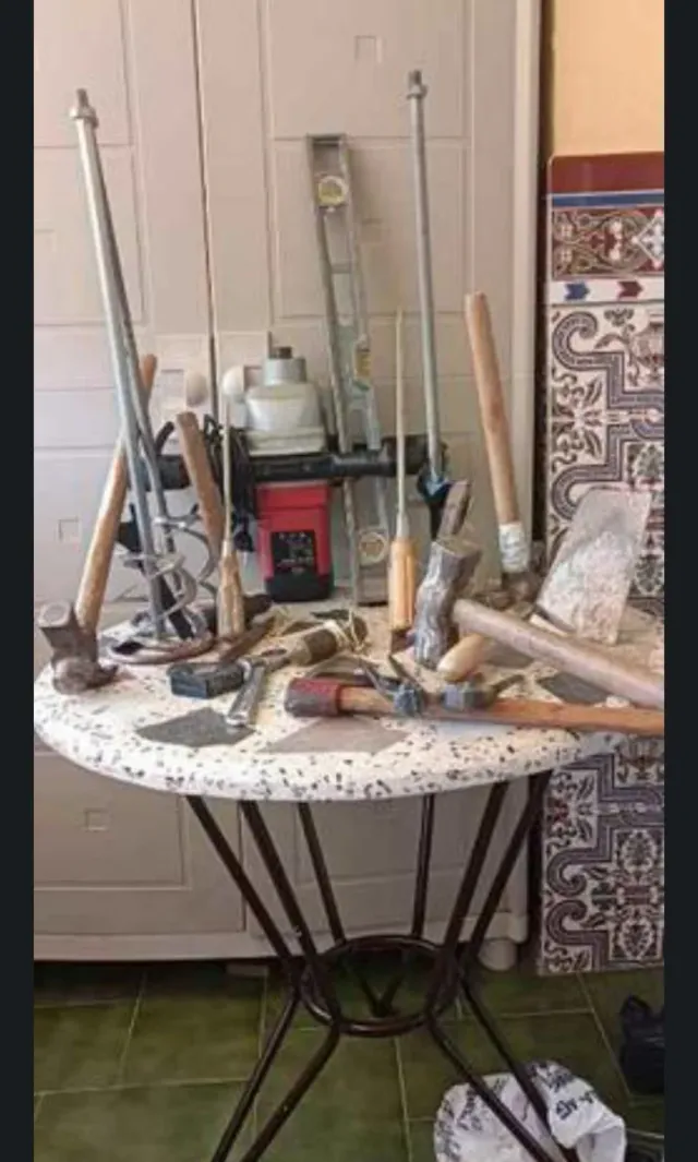 Se vende lote de herramientas de construcción. - Incluye mezclador, nivel, martillos, cinceles y más. - Ideal para trabajos de albañilería y reformas.