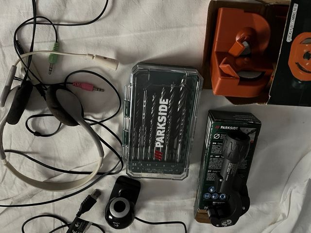Detalles del productoSe vende lote de herramientas Parkside. Incluye: juego de brocas, cortador de tubos y afilador de cuchillas. Las herramientas están en buen estado.