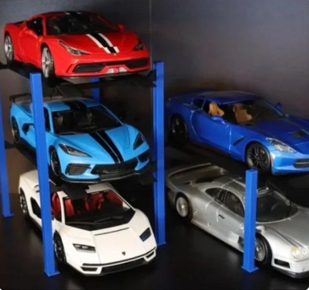 Detalles del producto2 Elevadores o expositores dobles en rojo y negro de coches de escala 1-18