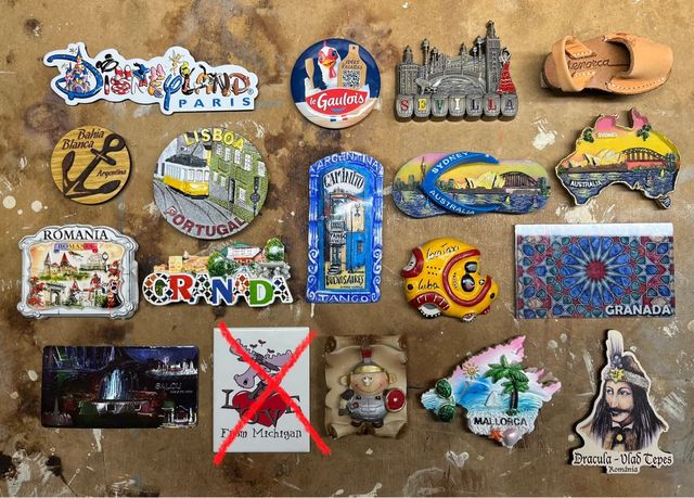Detalles del productoColección de imanes para nevera con motivos de viajes y lugares.