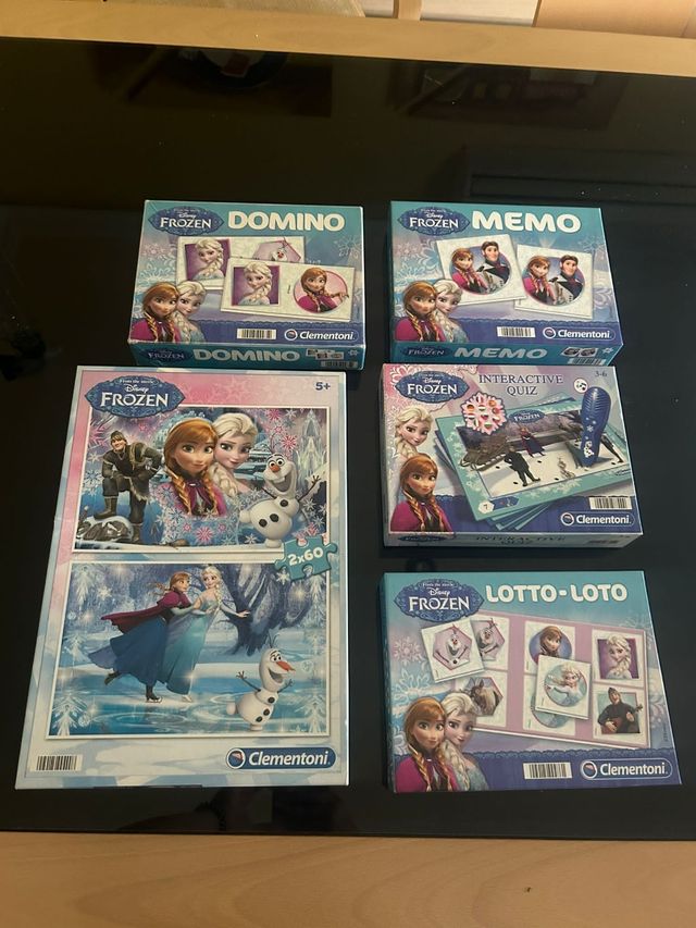 Cinco juegos de Frozen. Dos sin utilizar. Los demás con muy poco uso.