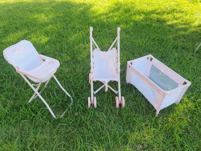 Trona, silla de paseo y cuna.Esta en perfecto estado ,lo único la silla de Paseo tiene las gomas dadas de sí. En la última Foto se ve.