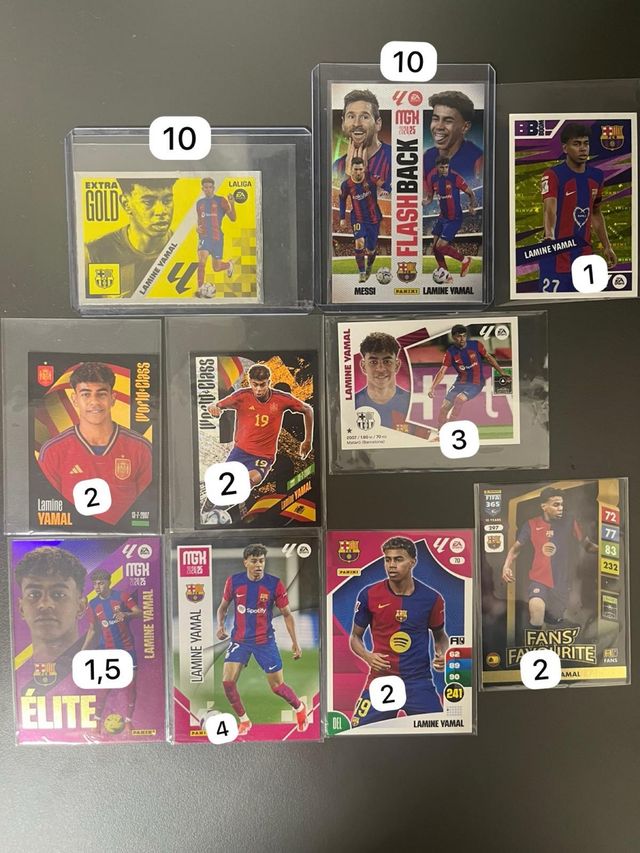 Detalles del productoColección de cromos de Lamine Yamal, jugador de fútbol.