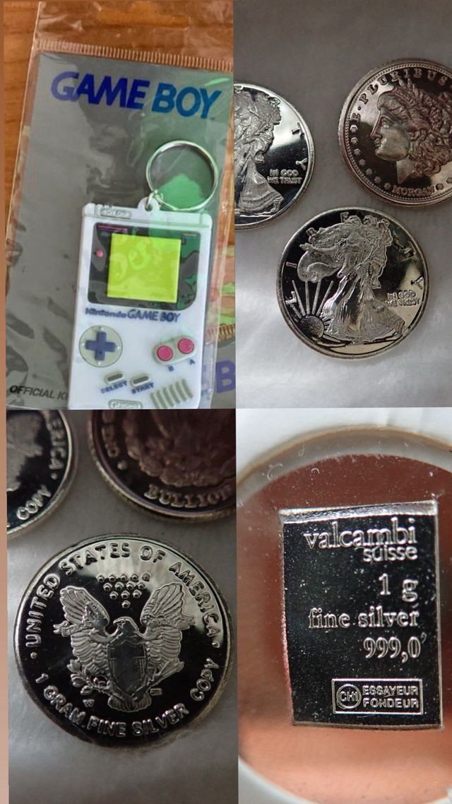 Detalles del productoSe vende lote que incluye un llavero con forma de Game Boy y varias monedas de plata.