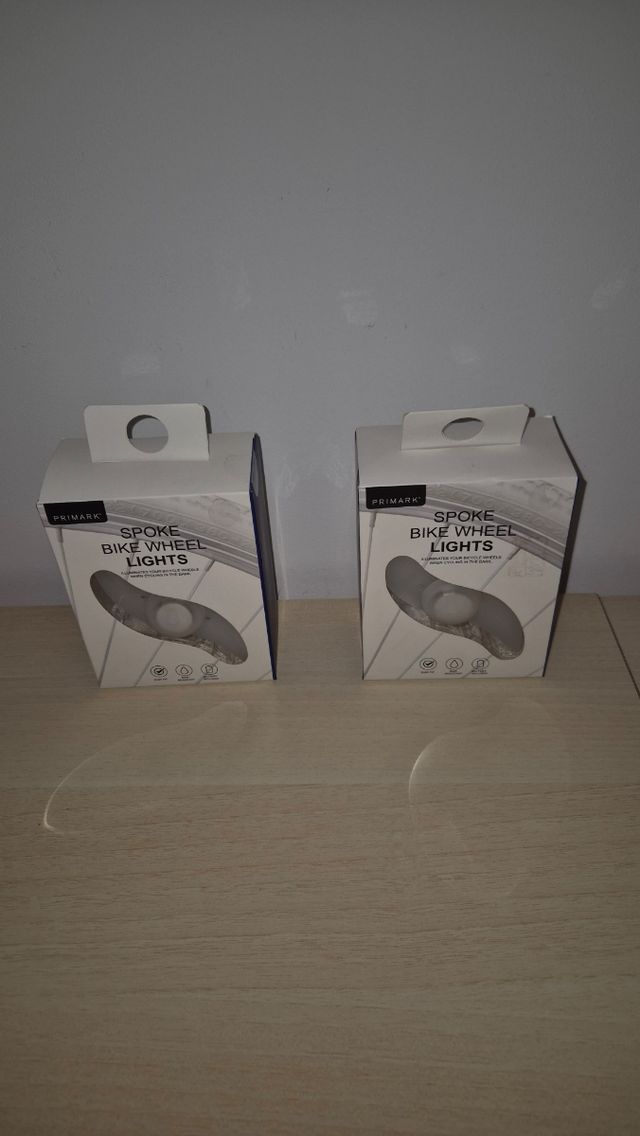 Pack de dos luces para radios de bicicleta de la marca Primark. Iluminan tus ruedas al circular de noche.