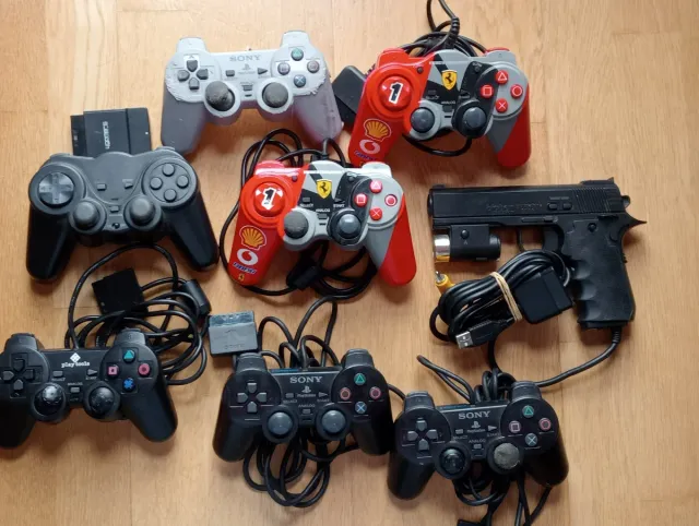 7 mandos de PlayStation 2 y PlayStation 1 y una pistola.