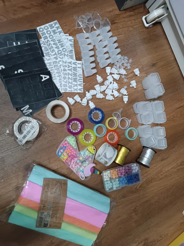 Lote manualidades: pegatinas, cintas, abalorios