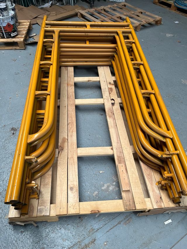 Se vende lote de marcos de andamio pórtico. 9 unidades - Medidas paso 2x1 metros. - Color amarillo.