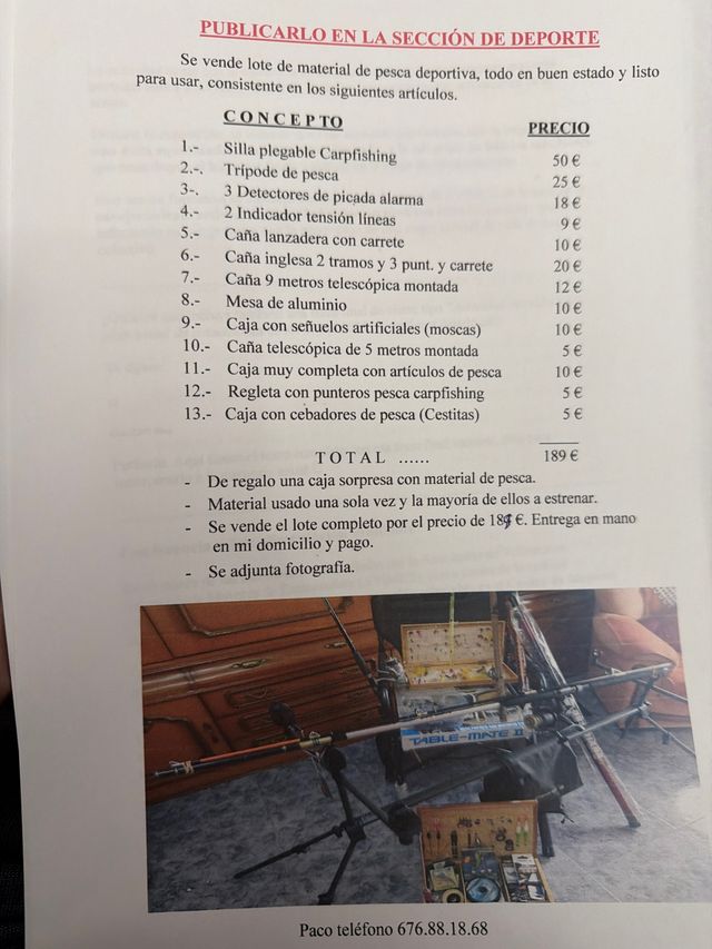 Detalles del productoSe vende lote completo de material de pesca deportiva, todo en buen estado y listo para usar.