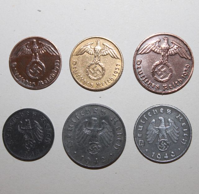 Son las 6 monedas . Pertenecen a la época nazi del III Reich. Auténticas de la época. Las de las fotos. PRECIO NO NEGOCIABLE !!!!