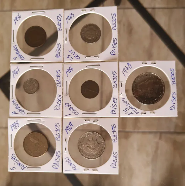 Detalles del productoColección de monedas antiguas de diferentes países y años. Cada moneda está protegida individualmente.