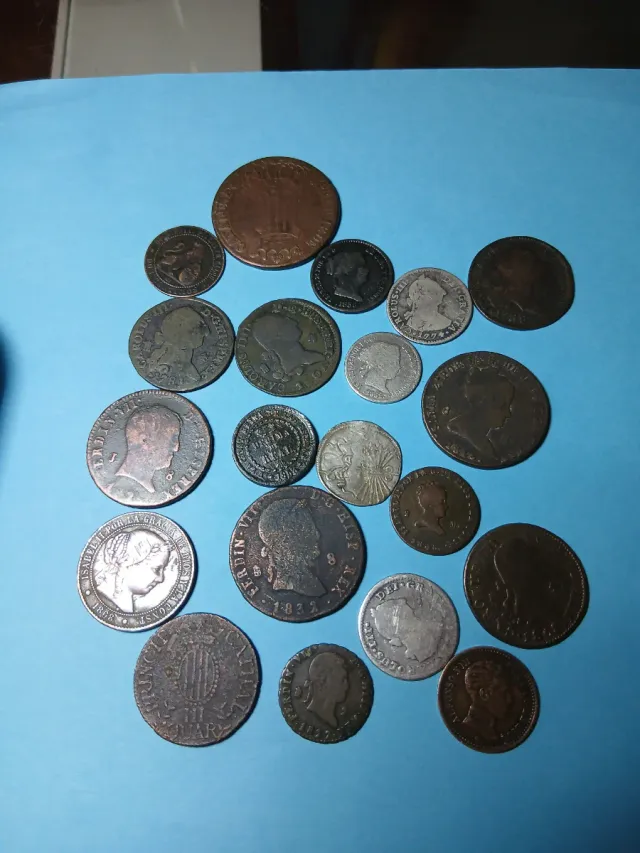 Detalles del productoLote formado por 20 monedas españolas. 16 de cobre y cuatro de plata. Algunas piezas escasas, como un real de los Reyes Católicos. También hay dos monedas de un real de Carlos III, 6 quartos y 3 quartos de Cataluña. Entrega en mano en Madrid. Lote no negociable, ni separado. A 13 euro moneda. 259 euros. Seriedad Absoluta.