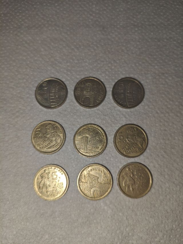 Detalles del producto3 monedas de 5 pesetas de la Rioja de 1996.
