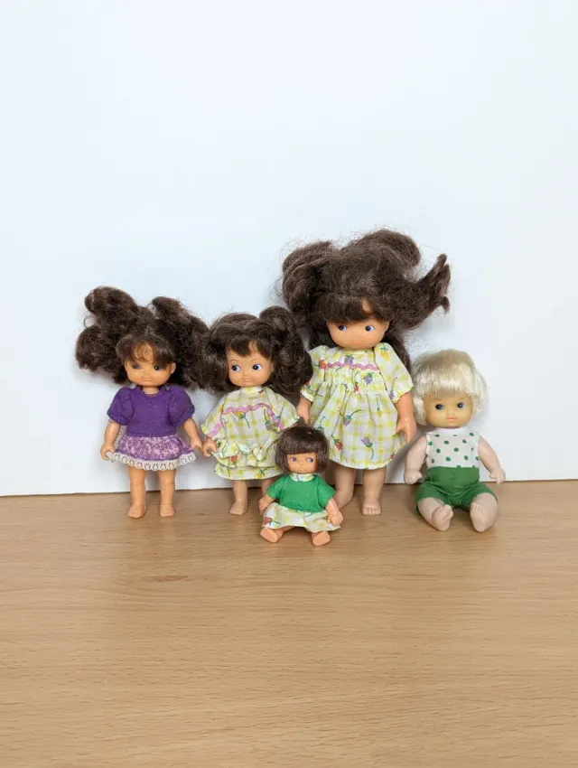 Detalles del productoConjunto de cinco muñecas vintage, incluyendo modelos de la marca Gladys.