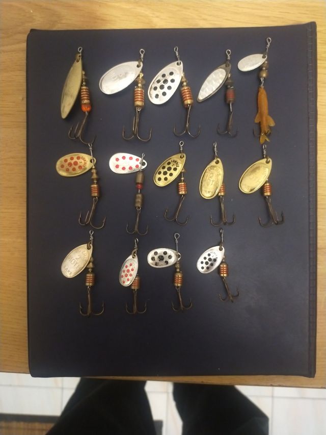 Detalles del productoConjunto de 14 cucharillas de pesca variadas, listas para usar.