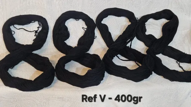 Detalles del productoLote de ovillos de lana negra, ideal para labores de ganchillo y otras manualidades.