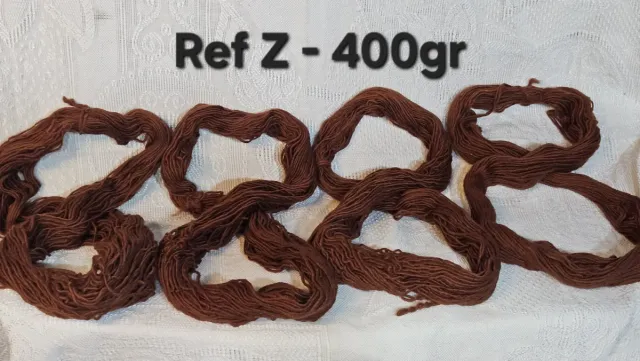 Lote de ovillos de lana artesana, ideal para labores de ganchillo o tejido. - Color marrón. - Peso total aproximado: 400 gramos.