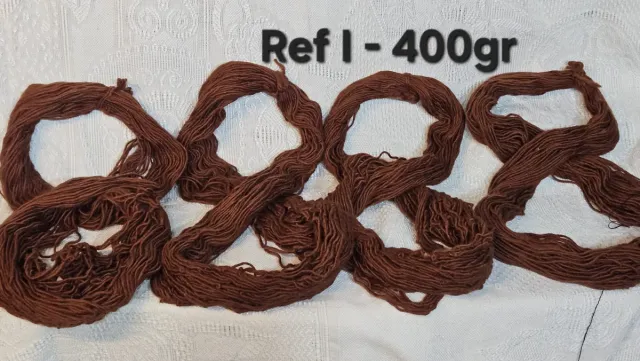 Detalles del productoLote de 4 madejas de lana artesanal de color marrón, ideal para labores de ganchillo o tejido.