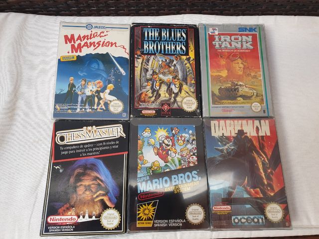 Buen estado · Nintendo y Ocean y SNK y Ubisoft · Chessmaster y Darkman y Iron Tank y Maniac Mansion y Super Mario Bros. y The Blues Br · Acción