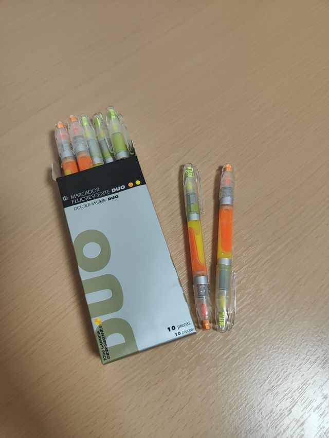 NuevoDetalles del productoMarcadores fluorescentes Duo, nuevos. Son ideales para destacar textos o dibujos.