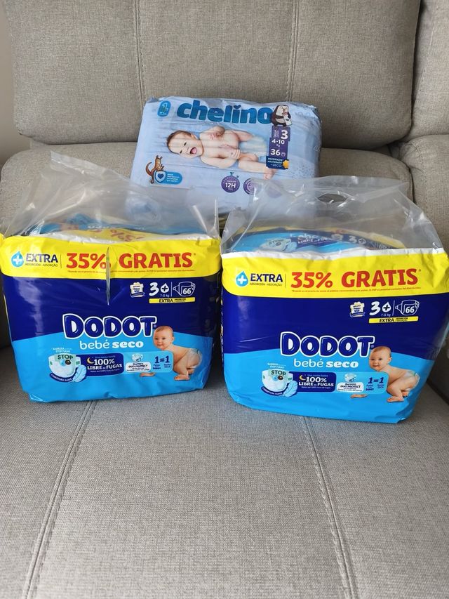 Lote de pañales Dodot y Chelino, talla 3. - Pañales Dodot 66 unidades - Pañales Chelino 36 unidades
