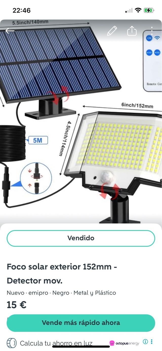2x Foco solar para exterior con detector 2x. luz de cortinas