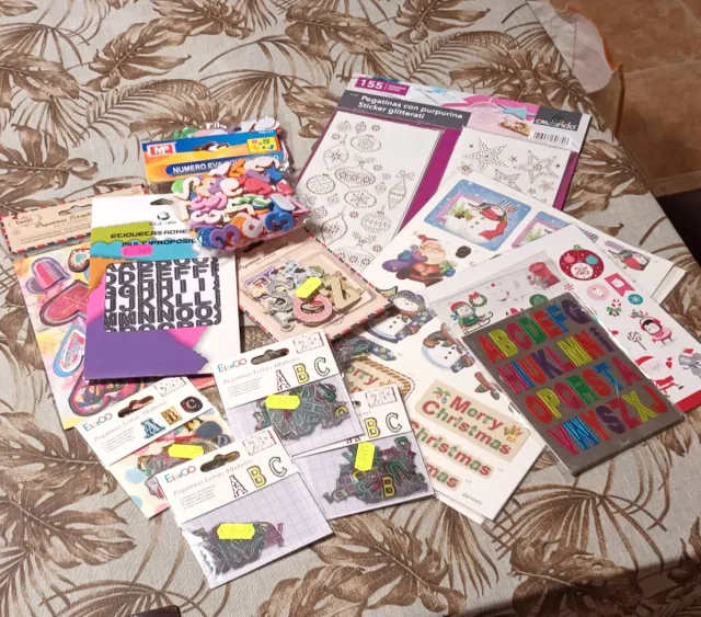Detalles del productoConjunto variado de pegatinas y figuras para manualidades, perfecto para dar un toque personal a tus proyectos. Varias marcas. La mayoría son nuevos en su embalaje sin abrir, en otros faltan algunas pegatinas o figuras.