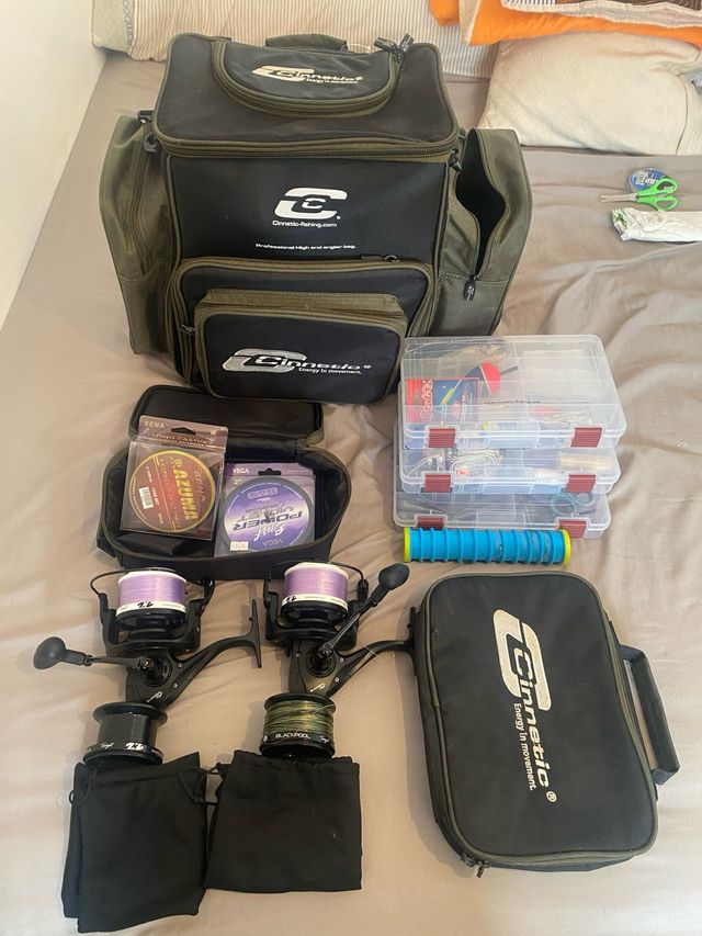 Lote pesca surfcasting Cinnetic: bolso, carretes,