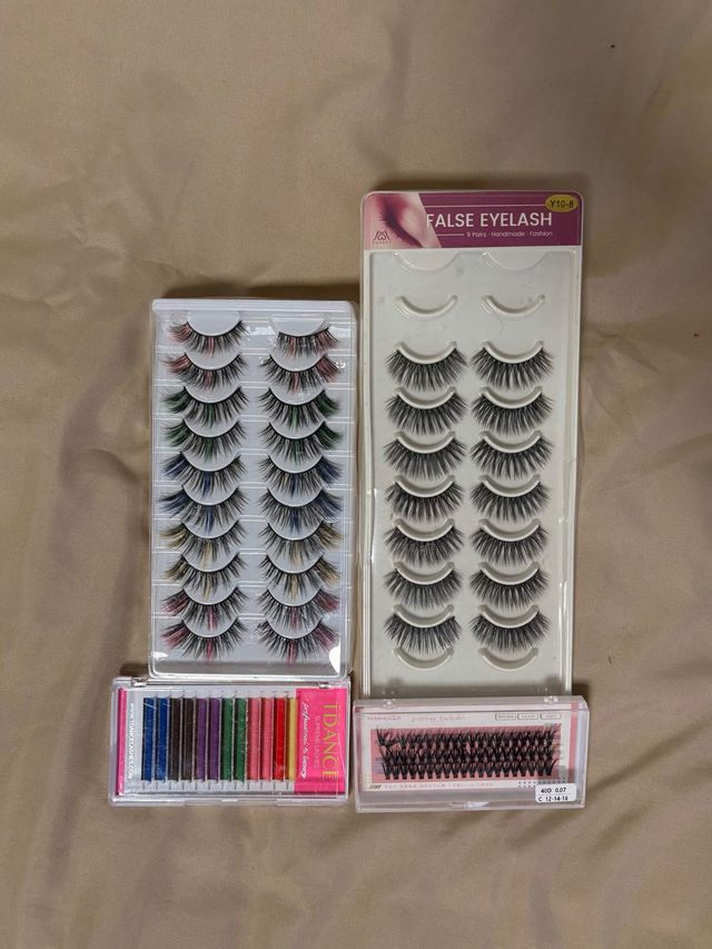 Variedad de pestañas postizas y extensiones para diferentes estilos.