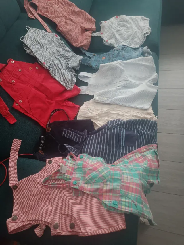 Detalles del productoConjunto de petos para bebé, algunos de verano, otros se podrían poner en otra época del año.