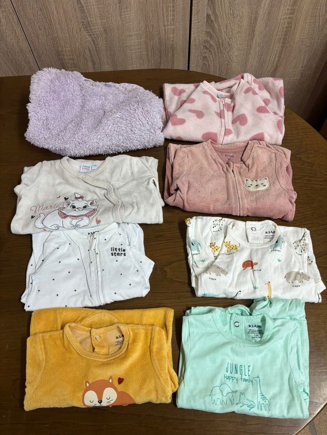 Detalles del productoLote de pijamas para bebé, ideal para varias tallas de 0 a 12 meses.