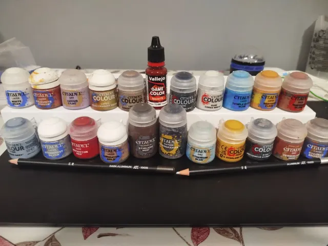 Lote de pinturas de modelismo Citadel y Vallejo de las colecciones combat patrol y conquest. Hay 3-4 abiertas, pero apenas usadas con lo cual están como nuevas