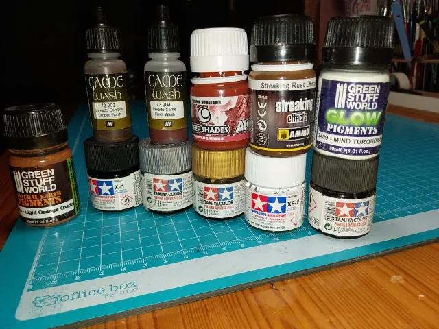 Detalles del productoLote de pinturas y pigmentos para modelismo.