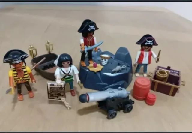 Lote Playmobil 4 piratas + barca y accesorios