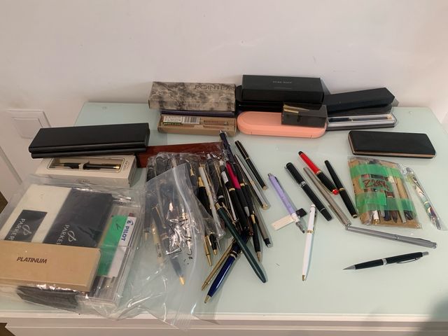 Detalles del productoColección de plumas estilográficas y bolígrafos de diferentes marcas tales como Montblanc, pilot, parker, etc.