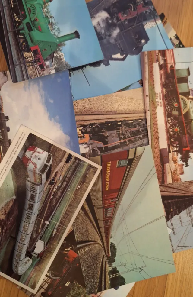 Conjunto de postales a color con temática ferroviaria. - Imágenes de diferentes locomotoras vapor, diesel y eléctricas. - Materiales de colección.