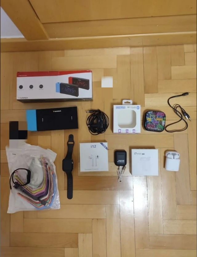 Mi band 3: está la pantalla rallada, incluye un montón de pulseras y el cargador.