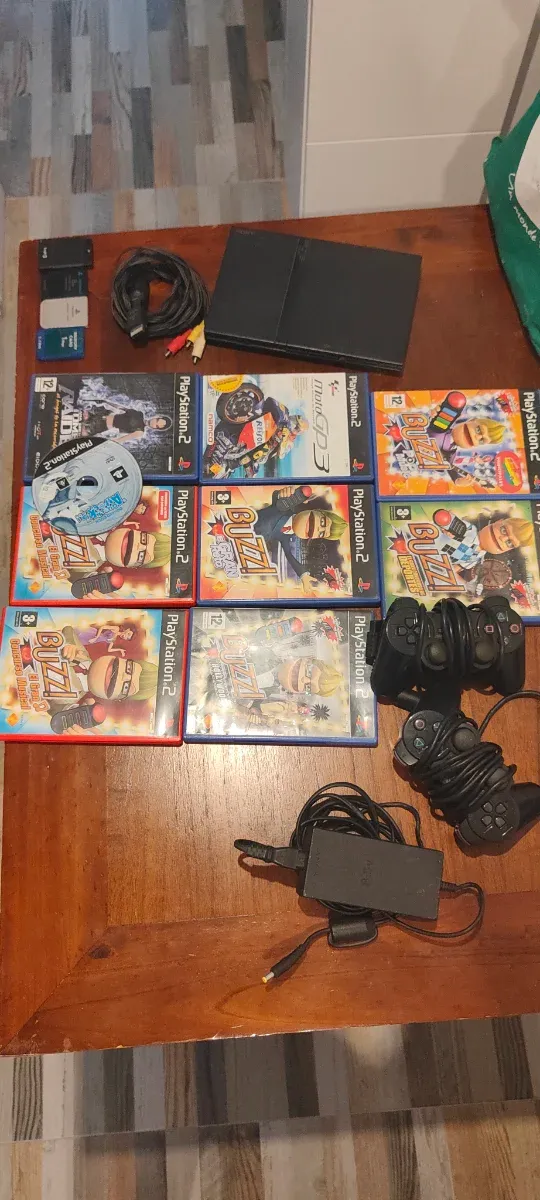 Lote PS2 Slim + 9 juegos + 4 tarjetas