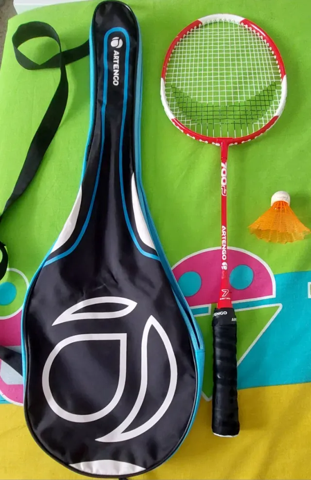 Se vende lote de bádminton con raqueta y funda de la marca Artengo. - Raqueta de bádminton Artengo. - Funda protectora para raqueta.