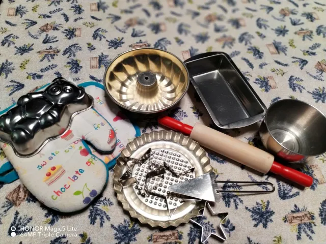 Detalles del productoConjunto de cacharritos y moldes para repostería.