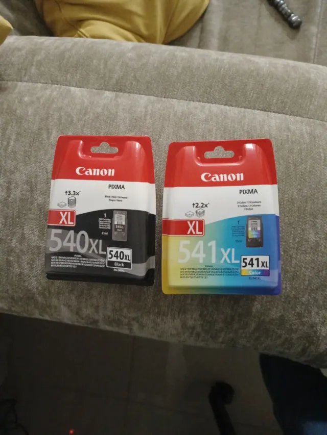 Pack de dos cartuchos de tinta XL para impresoras Canon PIXMA. - Cartucho 540XL Negro. - Cartucho 541XL Color.