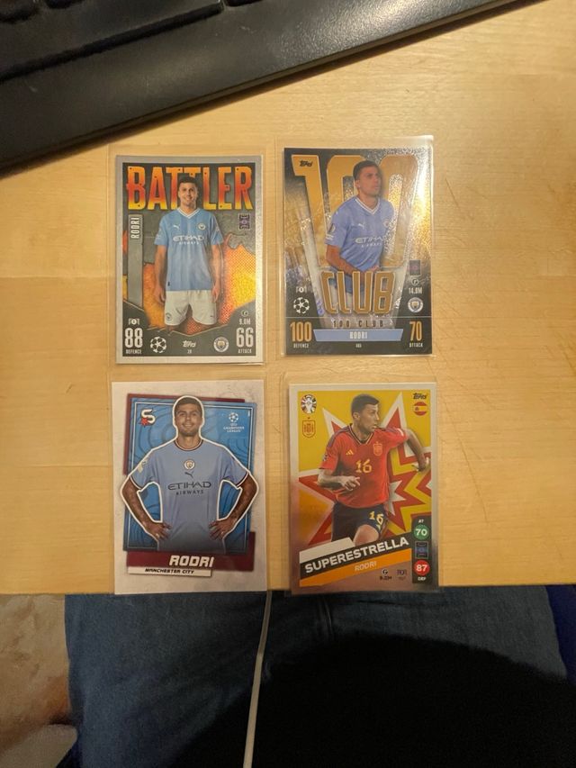 lote 4 cromos del futbolista del Manchester city y Balon de oro RODRI !
