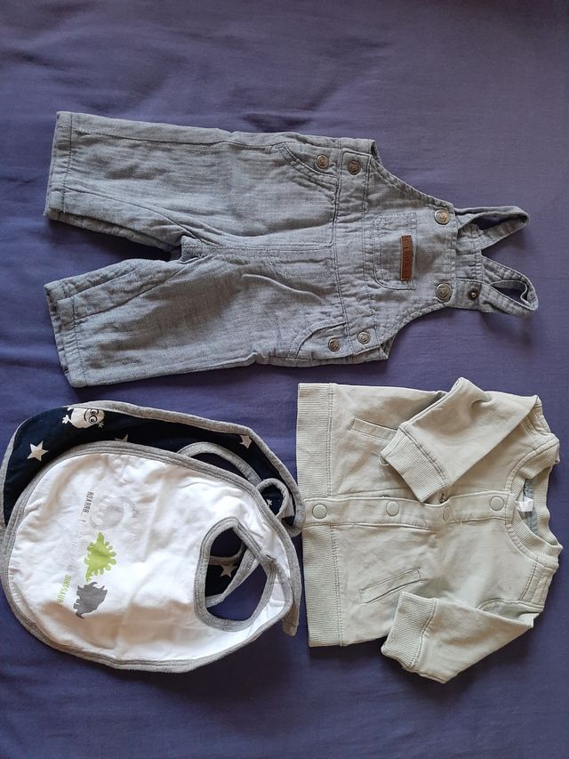 Lote con chaquetita, peto y 2 baberos. Tengo más cosas de bebe en mi perfil.