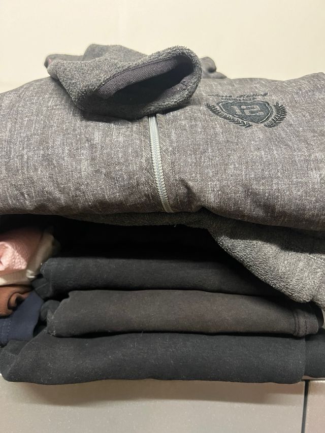Tallas M/L hay 4 pantalones de fouganza uno de ellos de hombre, un chaleco, un pantalon zaldi, polos, tirantes de comeptir, camisa blanca, un pantalon premier