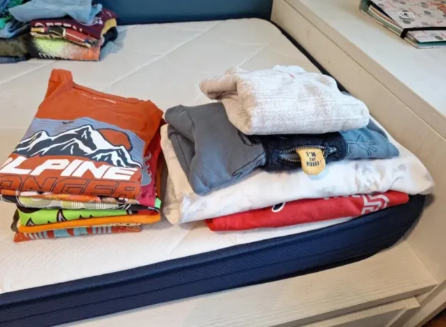 Lote de ropa para niño de 8 años. Incluye 3 sudaderas, 1 polar y 8 camisetas. Tienen uso, pero aún les queda vida por delante. El precio es totalmente simbólico.